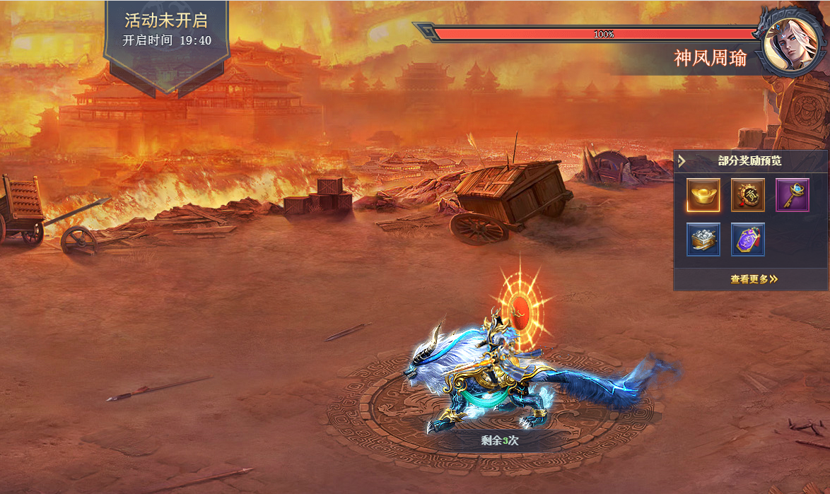 活动期间,每位主公有3次挑战BOSS的机会,战斗结束后根据对BOSS的伤害量转换为活动积分,每次挑战有3分钟冷却时间。