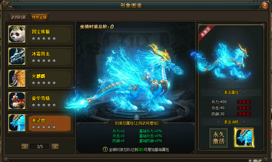 | 龙抬头好礼(5000元档位):坐骑皮肤—水灵兽*1+超级神将卡*2+天赋自选宝箱*1000 | ||||||||||||